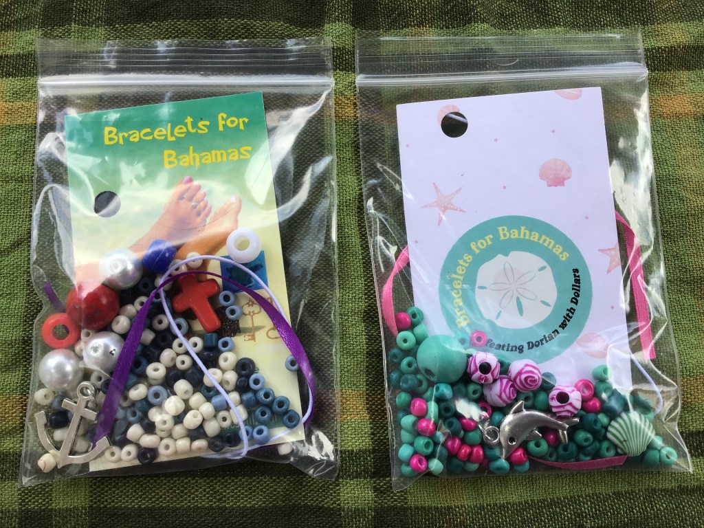 Good news!!! I found a gentleman in Florida who runs the Green Turtle Cay Foundation. He said I can send the bracelets to his work address and he will bring them to the island. So, they will finally, eventually…at least make it to the Bahamas.
